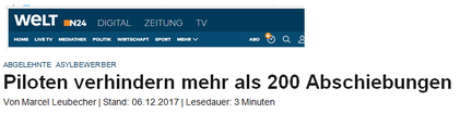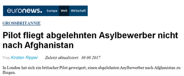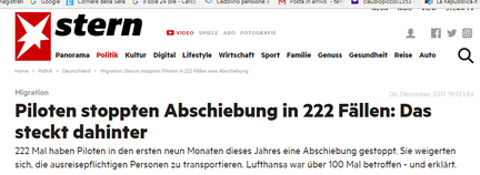 Mentre la notizia ha fatto il giro d’Europa, la grande stampa tedesca ha preferito parlarne molto poco. I piloti di diverse compagnie aeree in diversi aeroporti tedeschi si sono rifiutati di rimpatriare, contravvenendo all’ordine del governo tedesco, rifugiati politici in Afghanistan. La rivista “Stern“ riporta così i dati dei rifiuti nel 2017: “Il caso ha riguardato 107 volte l’aeroporto di Francoforte am Main, 40 volte Düsseldorf, 32 Amburgo. I piloti della compagnia multinazionale aerea Lufthansa si sono rifiutati in 108 casi su 222, così suddivisi: Lufthansa 63, Eurowings 22, Germanwings 15 e Austrian Airlines 8”.