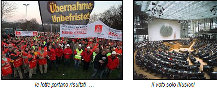 La quotidianità ci dice però che le preferenze elettorali delle masse lavoratrici cambiano in continuazione. I lavoratori non sono propriamente soddisfatti di chi votano. Evidentemente trovano che qualcosa non funziona nei politici. E questo naturalmente non riguarda solo la Germania, ma tutti i parlamenti. Qualcosa quindi non torna nel sistema.