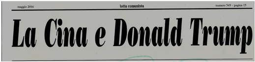 . Wir publizieren hier einen Teil des Artikels, den die weitverbreitete marxistische Organisation Lotta Comunista in der Maiausgabe ihrer Zeitschrift über die amerikanischen Präsidentschaftswahlen verfasst hat. Uns scheint er ein hervorragender Beitrag um zu verstehen, wie die internationale Politik mit ihren verwickelten und versteckten Verhältnissen funktioniert. Es wird unter Heranziehen der pekinger Zeitung “Global Times” herausgearbeitet, wie das chinesische Staatsbürgertum, vertreten durch die hohen Funktionäre des Staatsapparats, die Wahl des zukünftigen amerikanischen Präsidenten und die daraus eventuell resultierenden Folgen für das Verhältnis zwischen den beiden Großmächten sieht. Ein interessantes Beispiel dafür, wie die Bürgertümer sich untereinander einschätzen.