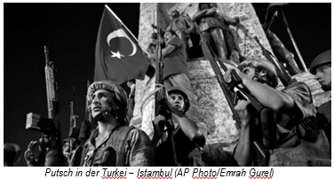 Gleich nach dem fehlgeschlagenen Putsch beschuldigt Erdogan einen Ex-Regierungsverbündeten, einen gewissen Gȕlen, der in der Vergangenheit, nachdem er mit Erdogan in Kontrast geraten war, in die USA geflüchtet ist, als dunklen Anführer bei dem Komplott des Staatsstreichs. Auf diese Überzeugung hin, aber ohne jeglichen konkreten Beweis, verlangt der politische Führer des türkischen Bürgertums von Washington mit ungewöhnlicher Bestimmtheit und Entschlossenheit dessen sofortige Auslieferung und droht den USA übertriebenermaßen mit einer Verschlechterung der politischen Beziehungen zwischen den beiden Ländern, falls der Forderung nicht stattgegeben werde. Seine so bestimmte und insistente Position, die (nie vorher gesehen) fast feindlich ist gegenüber den USA, ist sicherlich eine Neuheit im Verhalten Erdogans. Eine Überraschung und wie ein Signal.