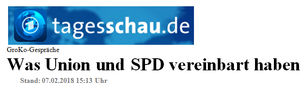 Wie jede Regierung zu Beginn ihres Mandats präsentiert auch die 3. Groβe Koalition, bestehend aus CDU-CSU und SPD und angeführt von der Kanzlerin Merkel eine Reihe von Vorschlägen. Die Tagesschau fasste die Hauptpunkte am 7. Februar so zusammen: bzgl. der Beschäftigungspolitik “Rückkehrrecht von Teilzeit in Vollzeit, “Befristung von Arbeitsverträgen soll auf eineinhalb statt bisher zwei Jahre begrenzt werden”, “das Kindergeld soll um insgesamt 25 Euro pro Kind und Monat steigen”, “Förderung soll über einen Zeitraum von zehn Jahren in Höhe von 1200 Euro pro Kind und Jahr gezahlt werden“, “der Zuzug von Flüchtlingen soll die Zahl von 180.000 bis 220.000 pro Jahr nicht überschreiten”, “die SPD will "Zwei-Klassen-Medizin" in Deutschland abschaffen”, im Gesundheitswesen “sollen in einem ersten Schritt 8000 neue Fachkraftstellen geschaffen werden”, bzgl. Sicherheit “sollen bei den Sicherheitsbehörden von Bund und Ländern je 7500 zusätzliche Stellen geschaffen werden, zudem 2000 neue Stellen in der Justiz”,