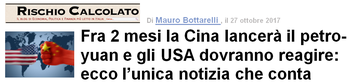 Aber Mauro Bottarelli wird in seinem Artikel vom 27.Oktober 2017 noch deutlicher bezüglich der möglichen Reaktionen Amerikas: “In 2 Monaten wird China den Petro-Yuan einführen und die USA werden reagieren müssen: das ist die einzige Nachricht, die zählt”. Seine Schlussfolgerung: