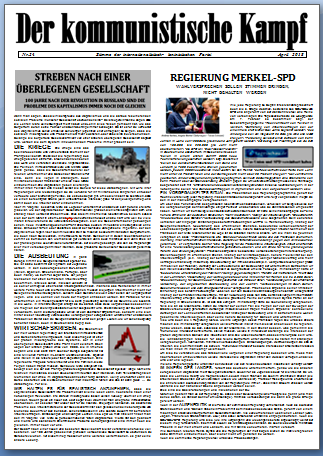 Also wird auch die 4. Regierung Merkel, wie ihre Vorgänger, diesen Prämissen folgen. Sie wird alles anders machen als im Wahlkampf versprochen, weil die Parteien in aller Welt, die sich anschicken zu regieren, genau wissen, dass sie sich, sobald sie an der Macht sind, in den Dienst dessen, was gemeinhin als “nationales Interesse” definiert wird, stellen müssen, welche in Wirklichkeit allerdings die Interessen der großen Kapitalisten, Banken und Industriellen sind. Sie wissen außerdem, dass es ihre Aufgabe sein wird, die lohnabhängigen Massen für das reiche Bürgertum unter Kontrolle zu halten mit ständigen Versprechungen, Ausflüchten, minimalen Verbesserungen, Entschuldigungen, Kehrtwendungen. Es sind die Arbeiter, die sich irren indem sie denken, “nationales Interesse” bedeute Interesse der arbeitenden Massen, wie man ihnen im Wahlkampf weismacht.