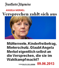 Nehmen wir zum Beispiel Frau Merkel. Nach der Wahlkampagne 2013 gewann sie die Wahl mit diesen “starken” Verpflichtungserklärungen: “Mütterrente, mehrere Kinderfreibetrag, Schutz vor Mieterschutz”. “Starke Verpflichtungen” denn zu jener Zeit lagen diese Probleme der Bevölkerung sehr am Herzen (wie auch die Frankfurter Allgemeine berichtete) und die Kanzlerin profitierte davon, indem sie sich in diesem Sinne stark machte und Stimmen gewann.